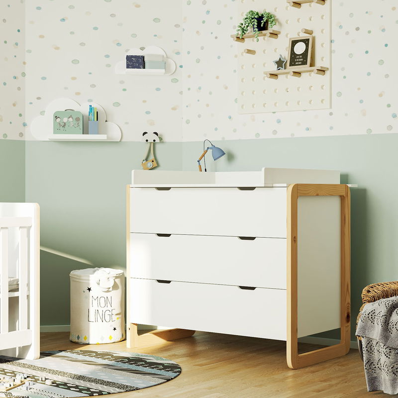 Nasza komoda "Laslo" oferuje Państwu maksymalny komfort, połączony z przemyślaną funkcjonalnością i wysokiej jakości wykonaniem. Aby wszystkie niezbędne produkty i przybory do pielęgnacji mieć szybko pod ręką, nasza komoda oferuje również 3 szuflady.