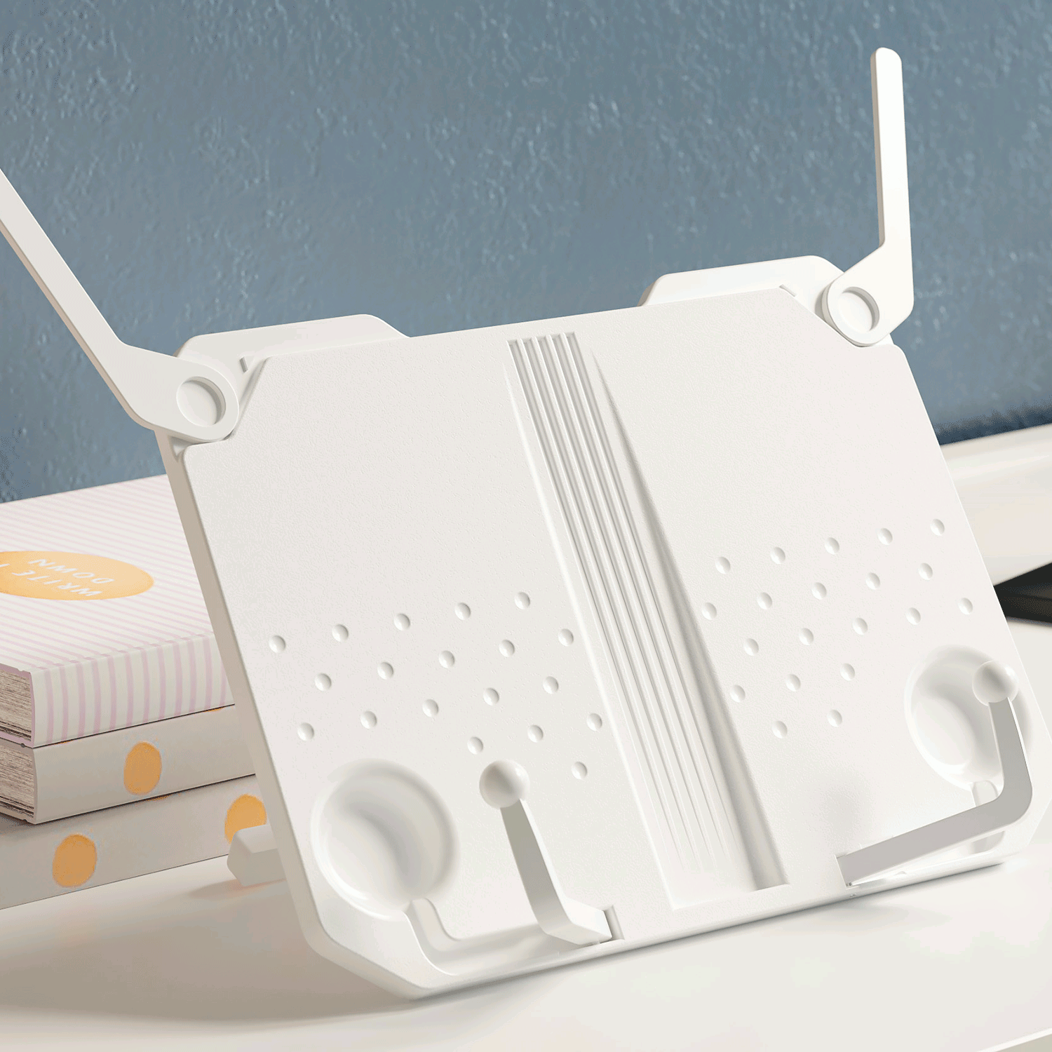 Uchwyt na książkę Flexi uwalnia ręce podczas czytania. Można go ustawić pod dowolnym kątem w kilku prostych krokach, a dzięki wysuwanym ramionom mieści książki i zeszyty ćwiczeń. Dzięki designowi z białego tworzywa sztucznego, uchwyt na książki pasuje do każdego pomieszczenia. Chcesz zmienić pokój? Nie ma problemu! Złożony, może być przechowywany w torbie, aby zaoszczędzić przestrzeń i rozłożony w dowolnym miejscu.