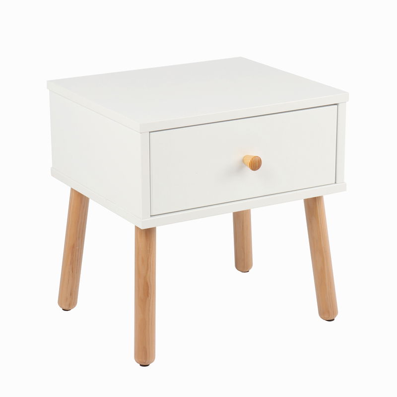 Komoda nocna biała z nogami i uchwytami z naturalnej sosny