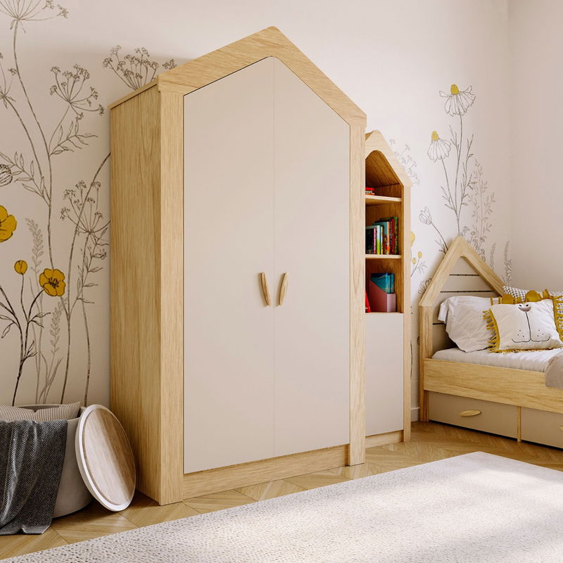 Numer artykułu: p5285693321Dostawa: , dostawa 5. - 10 listopada 2025Dimension_CS: B 111 / H 205 / T 56 cmDwudrzwiowa szafa My House od Nature Kid Szafa w kształcie domku dla elegancji i porządku - witaj w swoim osobistym domu mody! Nasza ekskluzywna szafa dwudrzwiowa łączy w sobie funkcjonalność i design w wyjątkowy sposób. Z imponującym wymiarem zewnętrznym 205 cm wysokości, 111 cm szerokości i 56 cm głębokości, to nie tylko miejsce do przechowywania, ale również architektoniczny akcent w dziecięcej sypialni. Drzwi otwierają się jak bramy stylowego domu, a za nimi czeka przemyślany układ wewnętrzny. Wysokość 205 cm oferuje wystarczająco dużo miejsca na długie ubrania, podczas gdy szerokość 111 cm zapewnia miejsce na duży wybór garderoby. Głębokość 56 cm umożliwia optymalne wykorzystanie przestrzeni, nie dominując przy tym nad nią. Wewnątrz znajdziesz inteligentnie zaprojektowane półki, gotowe na utrzymanie twoich ubrań w porządku. Czy to koszule, spodnie czy dodatki – wszystko znajdzie swoje miejsce. Wysoka jakość wykonania i klarowne linie nadają szafie nie tylko funkcjonalną elegancję, ale również uczynią ją estetycznym elementem w pokoju dziecięcym. Wybór materiałów i kolorów został dokładnie dobrany, aby płynnie wpasować się w różne style aranżacyjne. Ta szafa to nie tylko mebel, to także dekoracja, która upiększy twoją przestrzeń. Zainwestuj w styl i porządek dzięki naszej dwudrzwiowej szafie w kształcie domku. Przyciągający uwagę element, który nie tylko przechowuje twoje ubrania, ale także ozdabia twoją przestrzeń ponadczasową elegancją. (Produkt podobny do wizualizacji) -