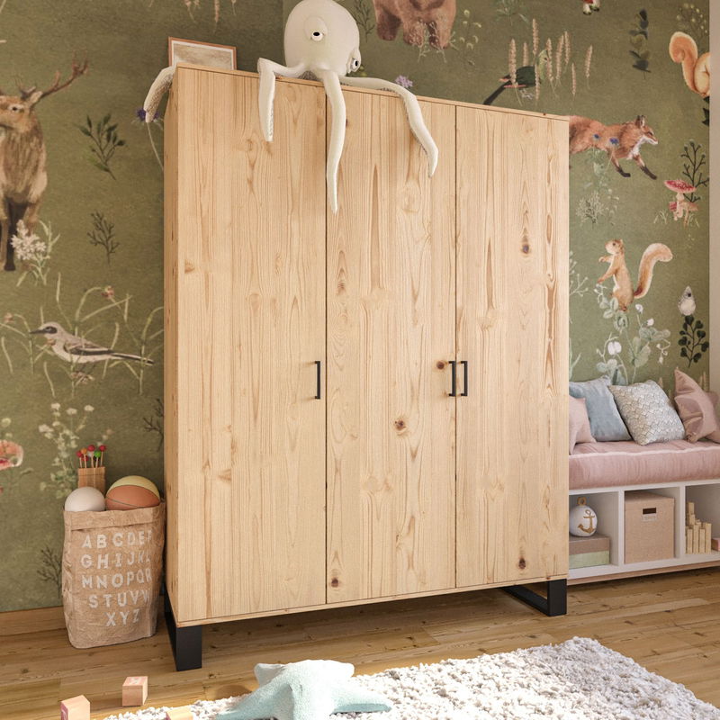 Numer artykułu: p528569452Dostawa: , dostawa 5. - 10 listopada 2025Dimension_CS: B 150 / T 54 / H 194 cmSzukasz przestronnej, pięknej & solidnej szafy do pokoju swojego dziecka? W takim razie 3-drzwiowa szafa Nico jest idealna, połączenie litego drewna i eleganckich uchwytów oraz nowoczesnej podstawy razem tworzą absolutną atrakcję dla oka. Czy to w pokoju dziecięcym, młodzieżowym czy sypialni, ta szafa jest obowiązkowym elementem wszystkich pomieszczeń w sosnowym wyglądzie. Szafa szczególnie dobrze wygląda na drewnianych podłogach, ale generalnie pasuje do wszystkich mebli w naturze i wszystkich produktów z serii Nico marki Nature Kid. Szafa oferuje dużo miejsca do przechowywania spodni, koszulek i koszul. W praktycznych dwóch szufladach można sensownie przechowywać pościel i co. Dodatkowo szafa oferuje 4 duże komory i drążek na ubrania, szuflady są wyposażone w uchwyty. Seria jest bardzo stabilna i trwała dzięki zastosowaniu stali i litego drewna. Nasze lite drewno sosnowe posiada certyfikat FSC. Lakier jest oczywiście odpowiedni dla dzieci i został odpowiednio przetestowany. (Zdjęcie podobne)