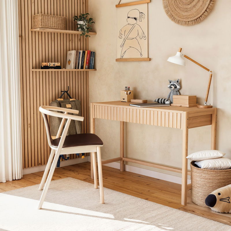 • Biurko w stylu Japandi - harmonizuje ze wszystkimi produktami Ninja z dębu od Nature Kid